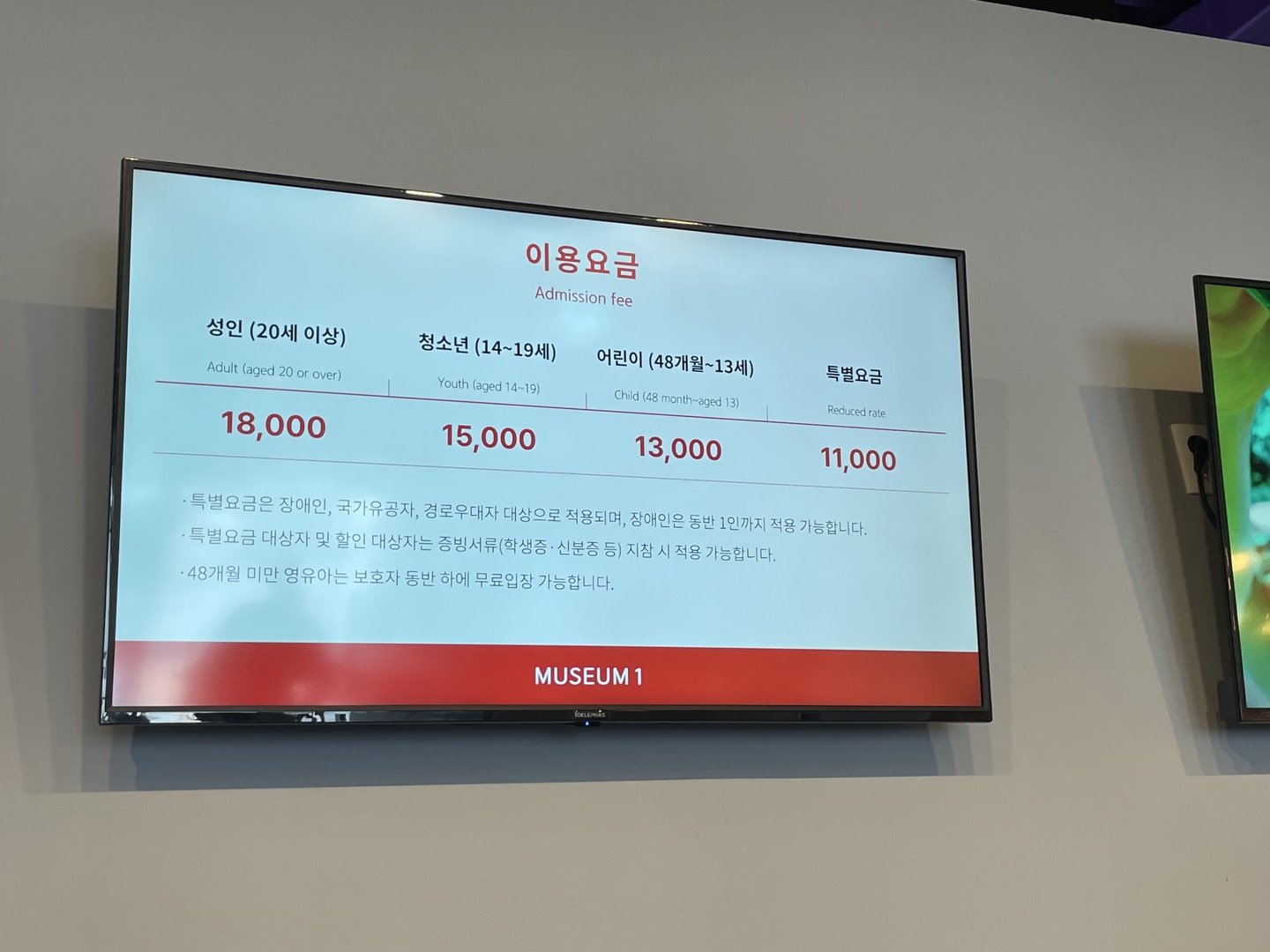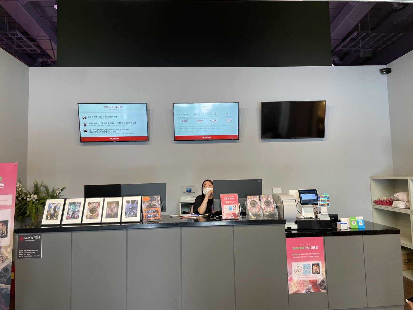 뮤지엄 원의 출입문을 열면 이렇게 안내데스크가 보이고, 성인입장료는 18,000원이다. 일반적으로 전시관의 입장료와 비슷한 수준이다.